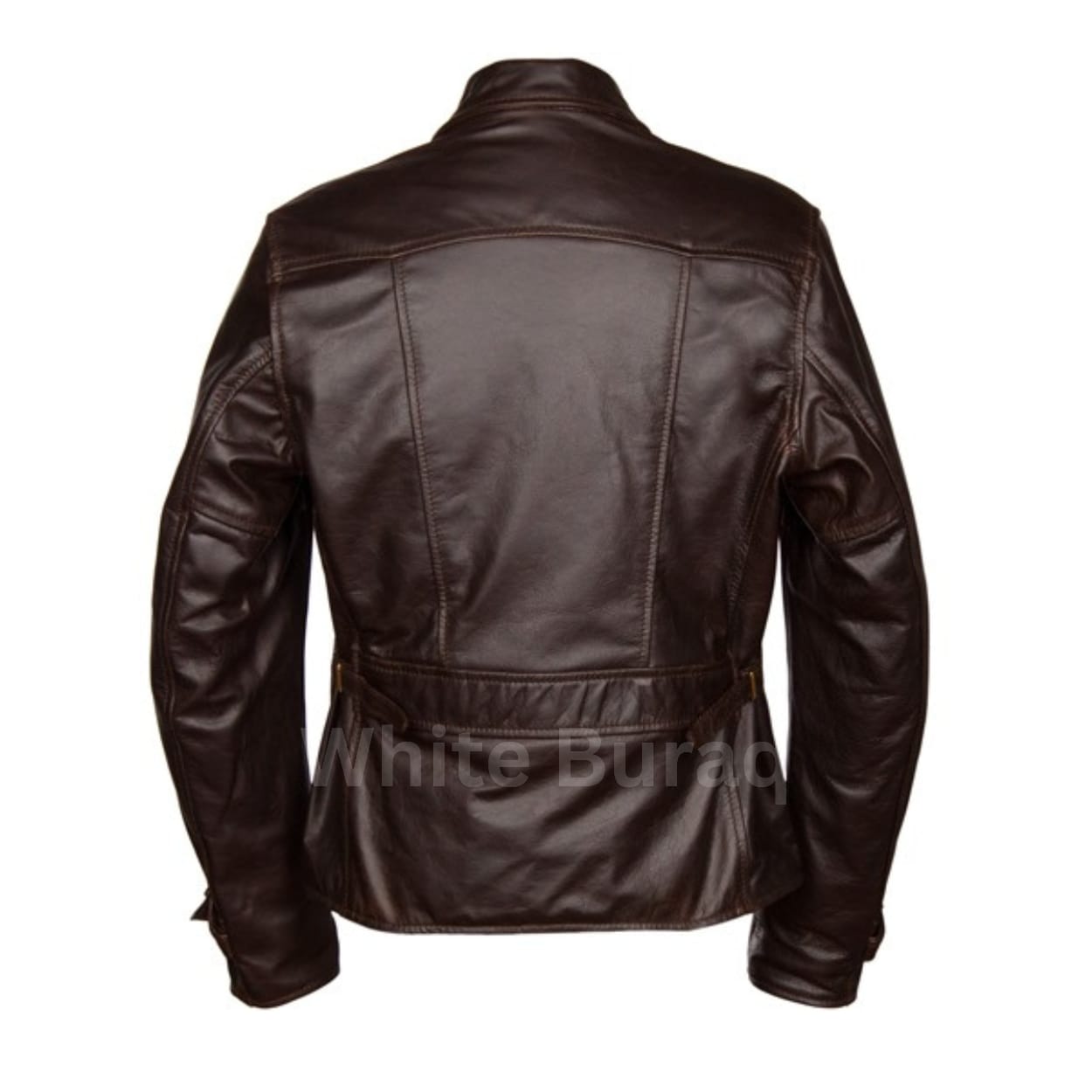 Step into timeless elegance with the White Buraq Classic Steerhide Leather Jacket by White Buraq, designed for those who appreciate heritage-inspired craftsmanship. Tailored with a slimmer fit, this jacket features an elongated point-to collar, slimmed-down sleeves, a slightly dipped front, and a trimmed waist for a refined silhouette. The diamond puller chest pocket zipper and strap & buckle cuffs add distinctive details, while premium Battered Steerhide ensures durability, supple texture, and luxurious character—perfect for casual or sophisticated everyday wear.
