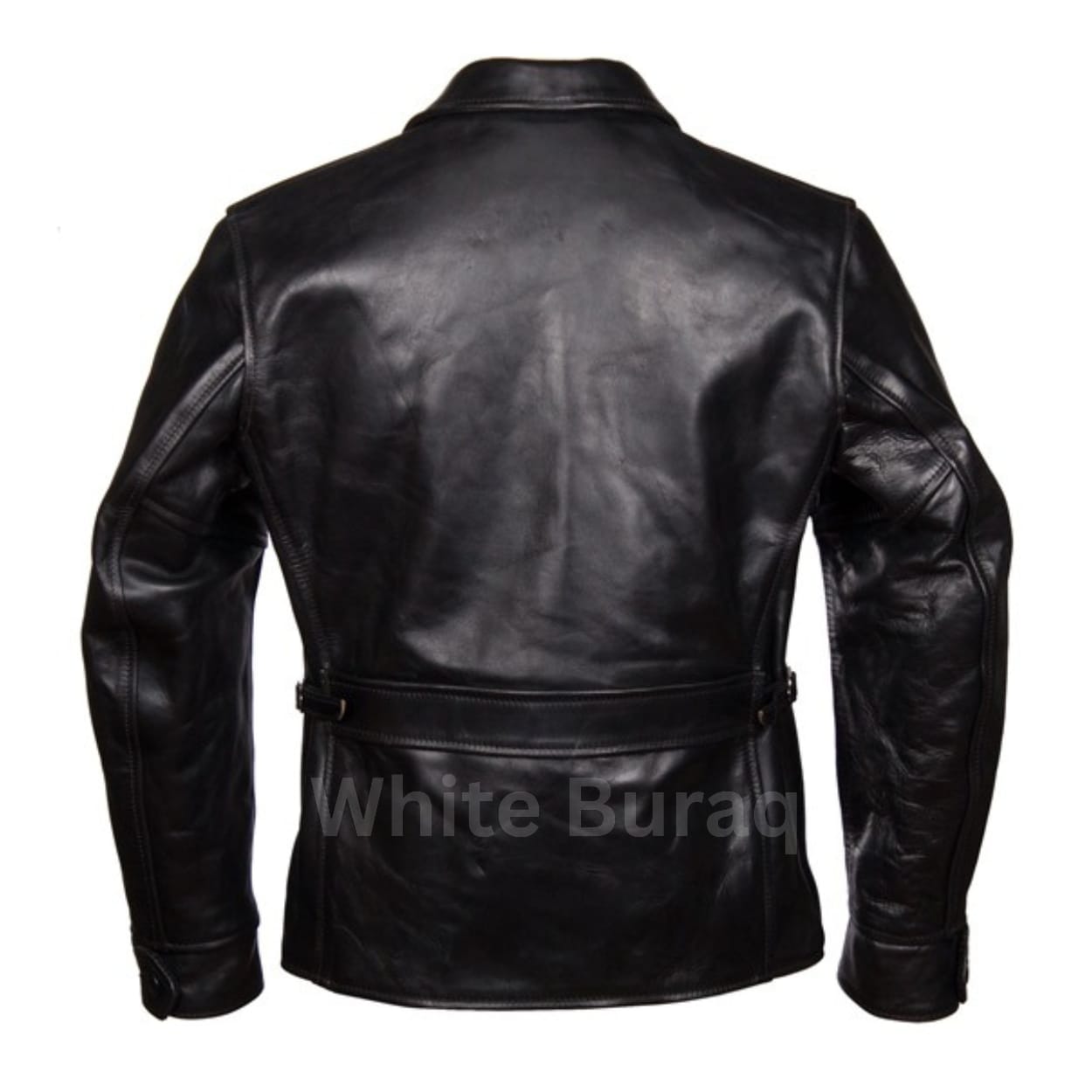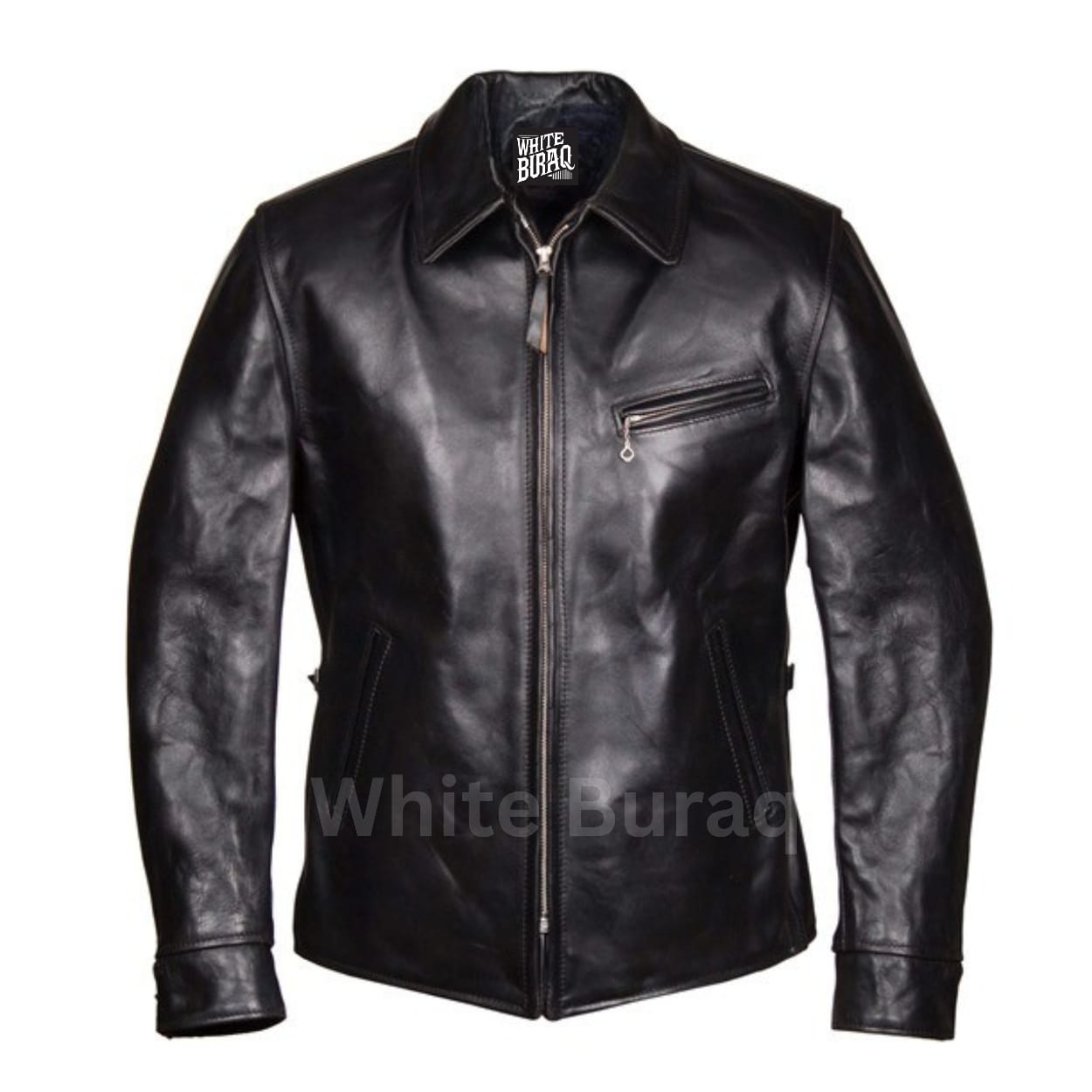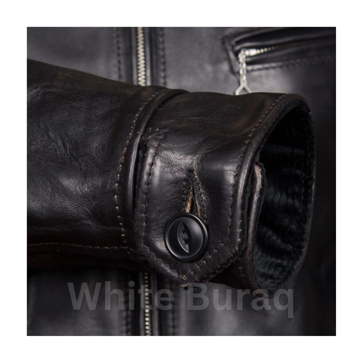 The White Buraq Plainsman Leather Jacket is designed for those who appreciate timeless style with a modern edge. Tailored in a refined slimmer fit, this jacket offers exceptional comfort while maintaining a sharp, elegant silhouette. Crafted from premium Black Chromexcel Front Quarter Horsehide, it delivers durability, rich texture, and everyday versatility—making it an ideal choice for casual wear with a luxurious touch.
